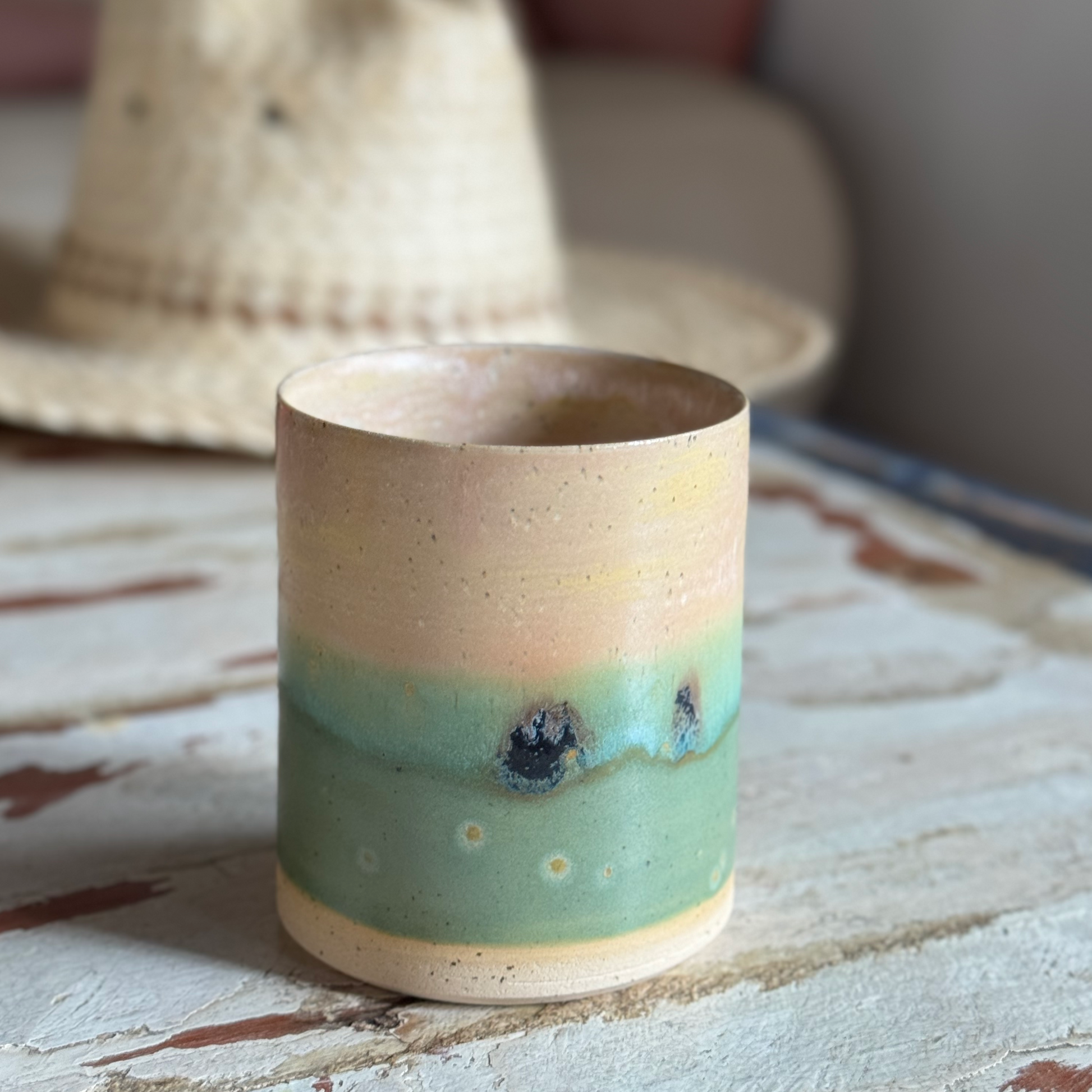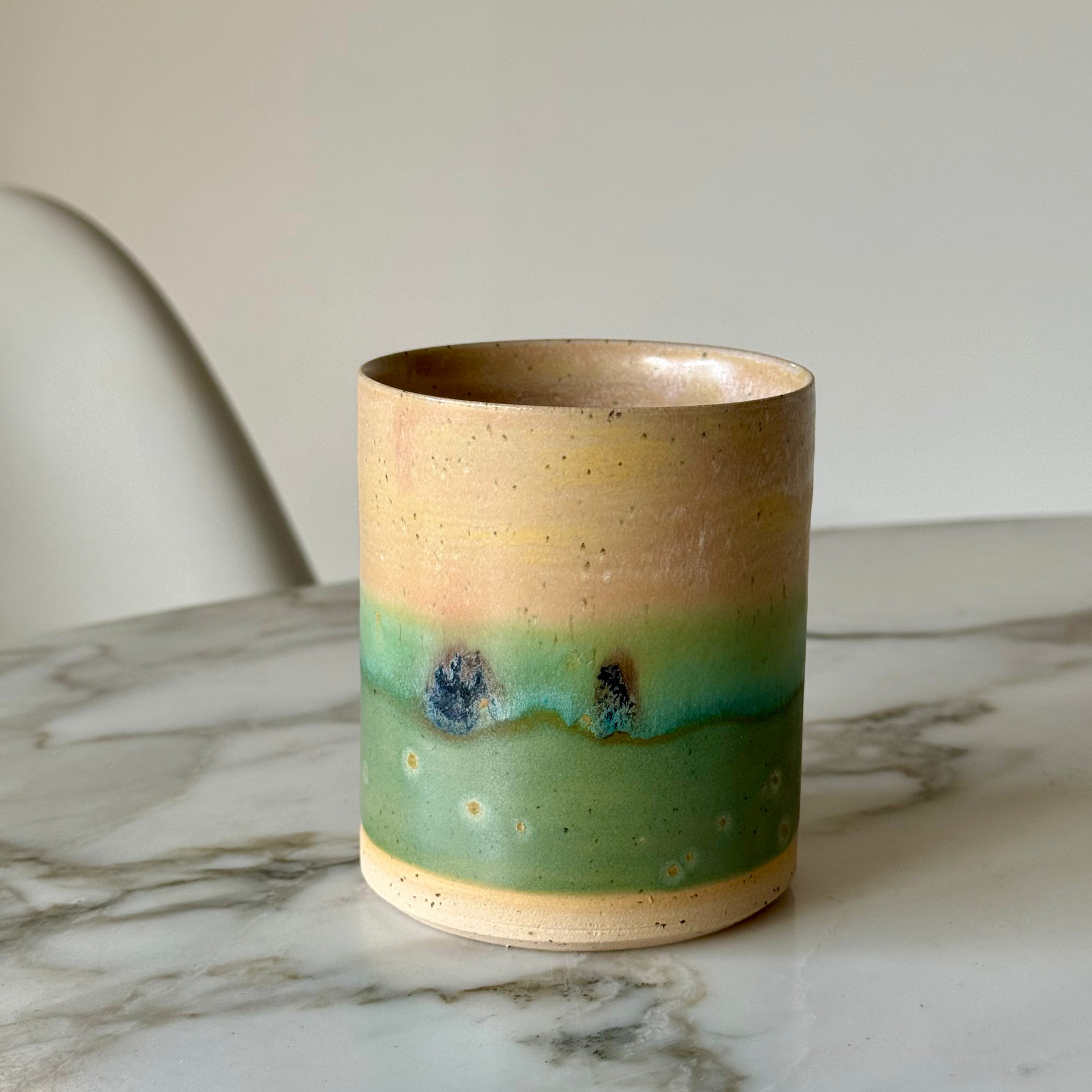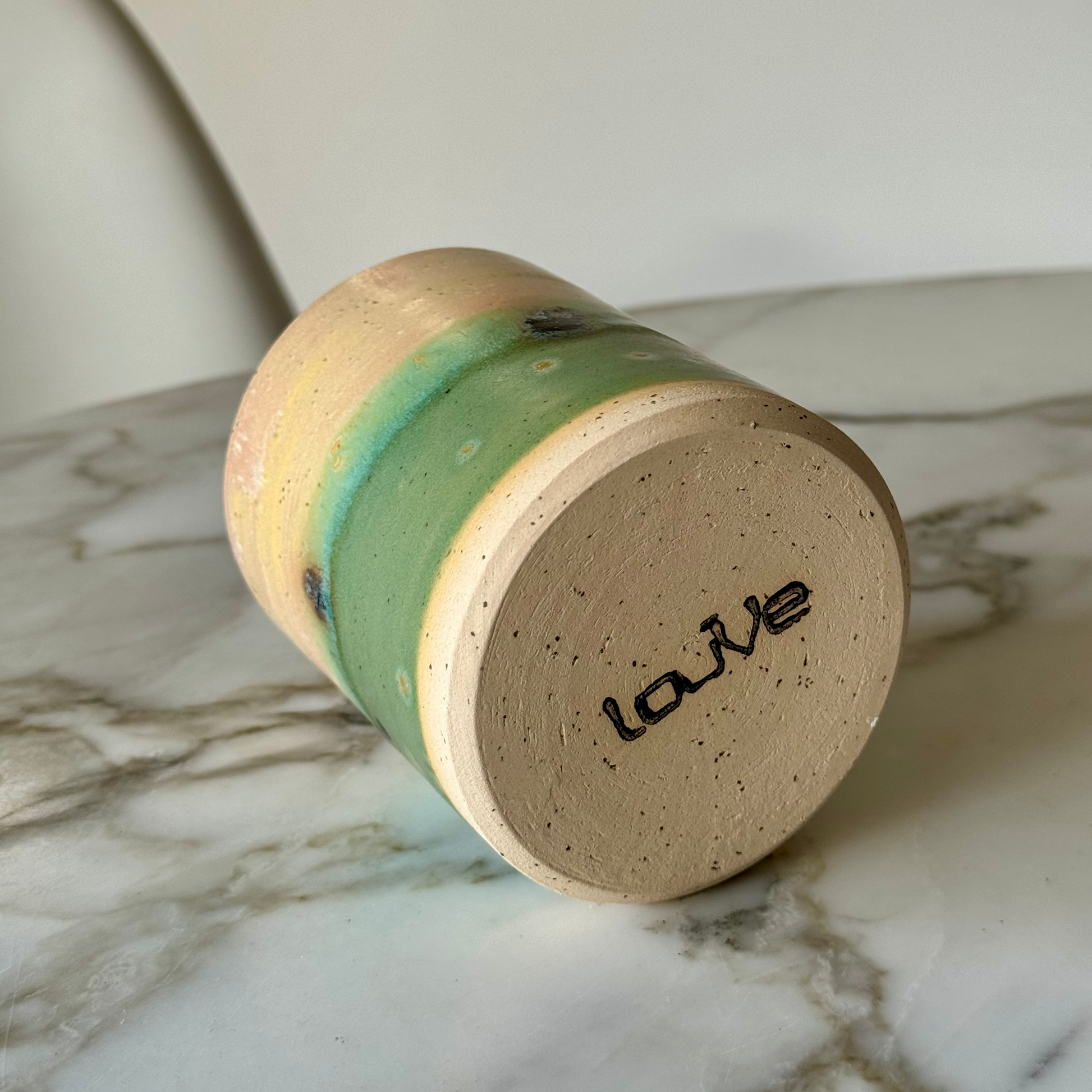 This patina color and mat pearl mug evokes a feeling of softness and sophistication. The patina color gives a vintage, antique feel, while the matte pearl adds a touch of delicacy and elegance, with a lightly textured finish that subtly reflects the light.