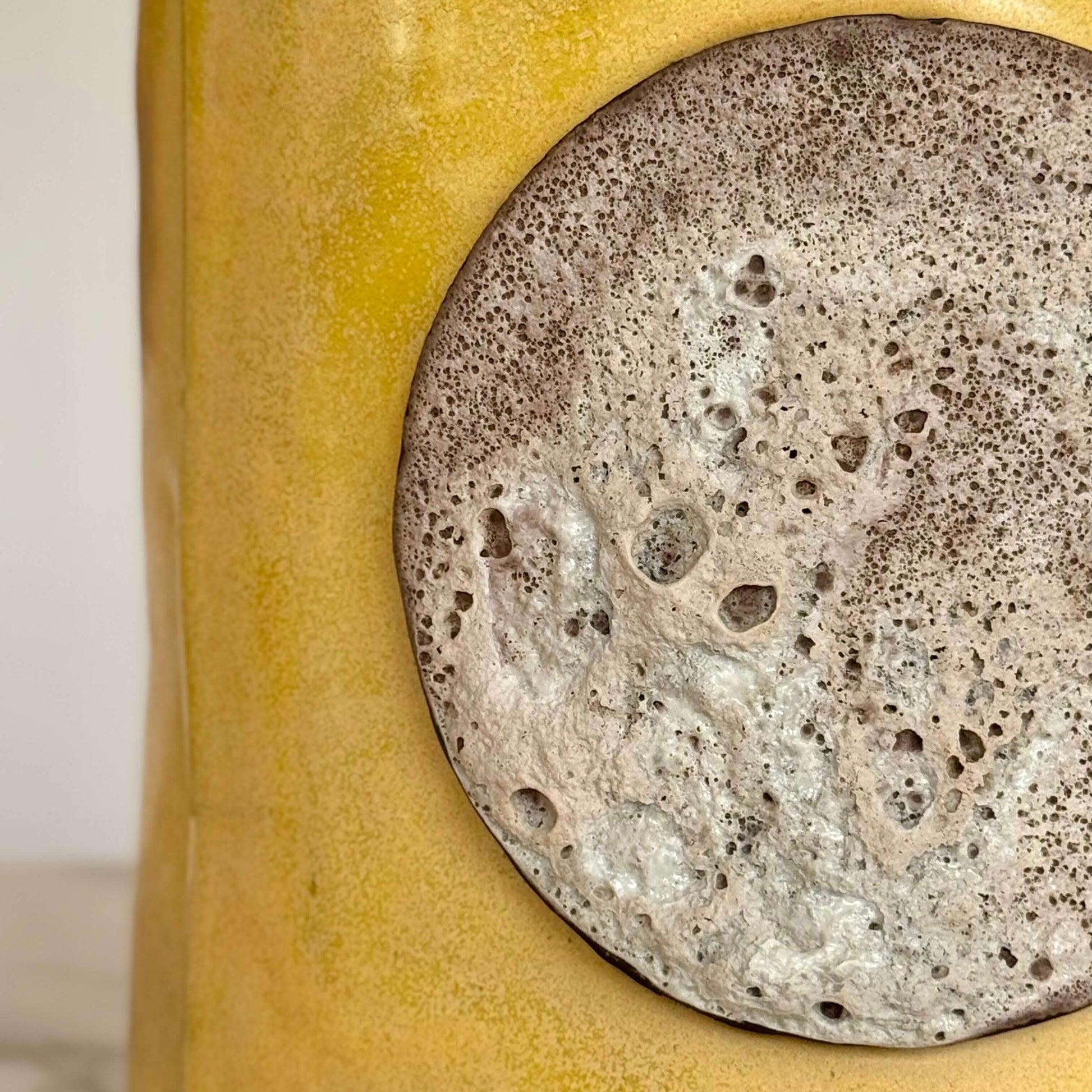 Color glaze satin yellow and off white lava texture.